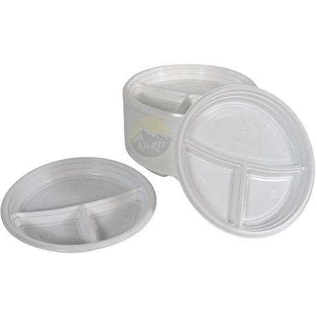 White plastic plate, 22cm, 3 compartments - 100 pieces incl. SUP