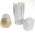 Wok to Go noodle boxes made of solid white cardboard are often used for Chinese takeaway (carry-out trays) and Italian pasta dishes. The flaps on the top of the container serve as a lid when simply folded into one of the two closures. The base of the container is round and leak-proof, making the noodle box also suitable for sauces. A very popular product in Asia. The capacity is 500 ml.