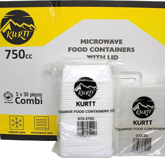 Elk doos bevat 250 bakjes + 250 deksels.